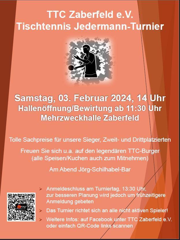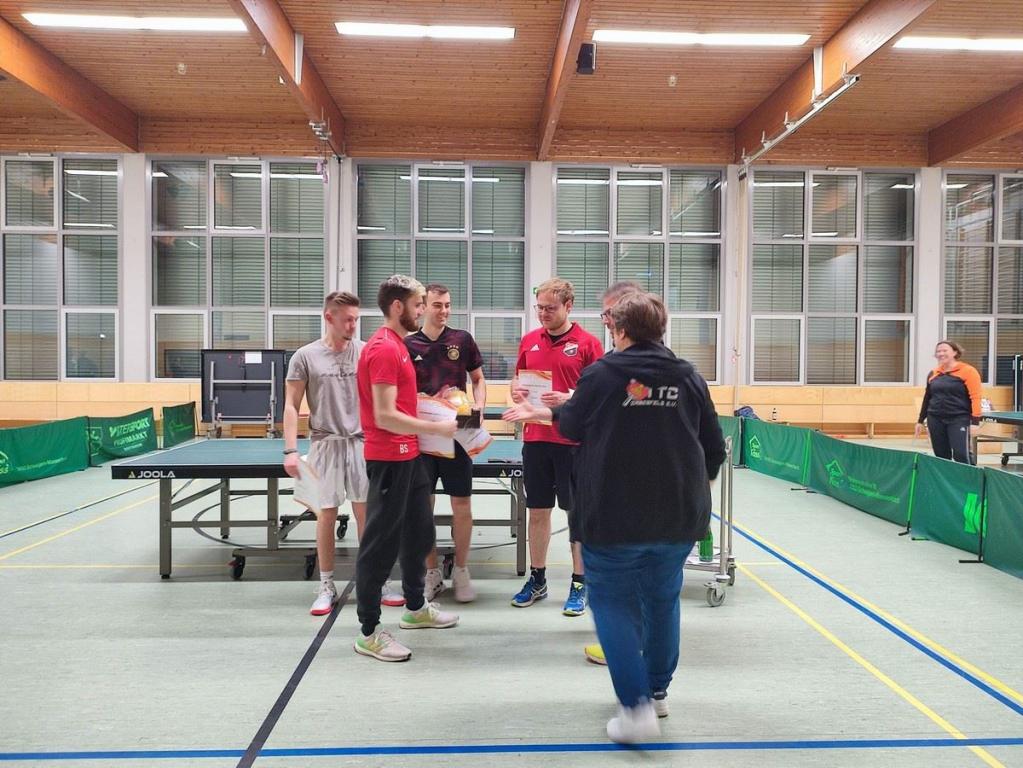 Zahlreiche Teilnehmer und Teilnehmerinnen, sowie Besucher konnte der TTC am Samstag, den 03. Februar 2024 in der Halle begrüßen. Insgesamt 41 Teilnehmer, darunter 11 Damen und 30 Herren, spielten um den Sieg. Spannende Matches konnten wieder einmal bestaunt werden, die oftmals erst im fünften Satz entschieden werden konnten.